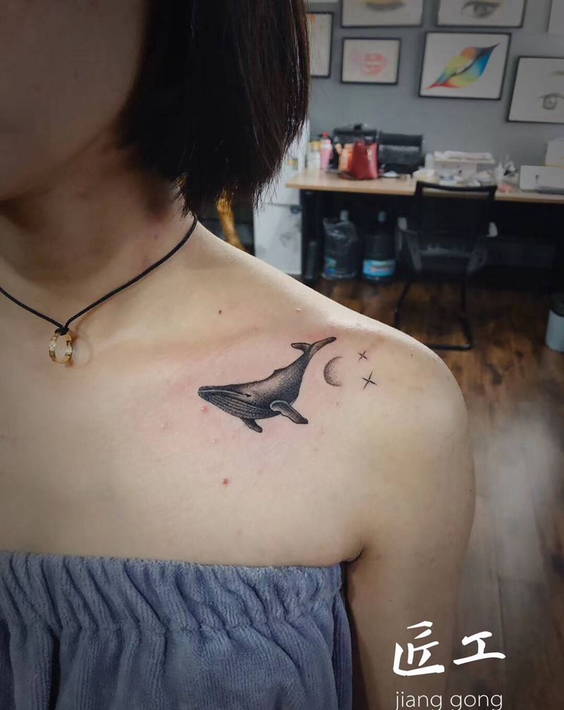 鲸鱼!纹身图片_肩部点刺纹身图案