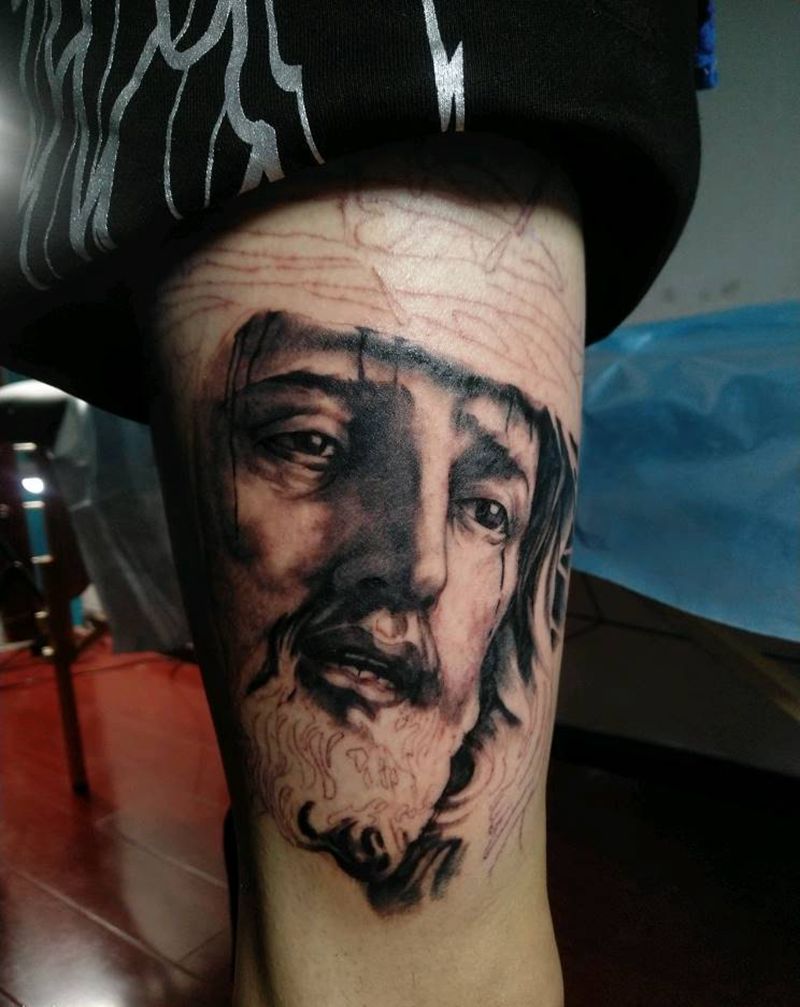 写实耶稣未完纹身图片