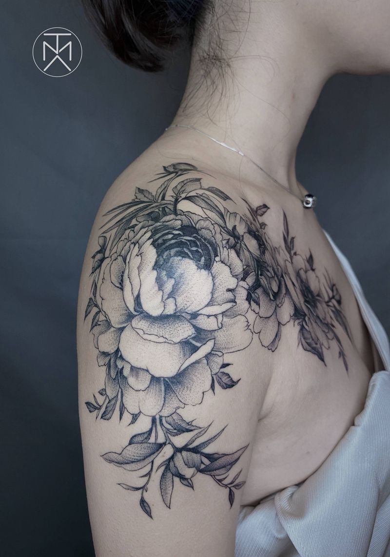 肩花纹身图片_肩部手臂花素花女生纹身图案