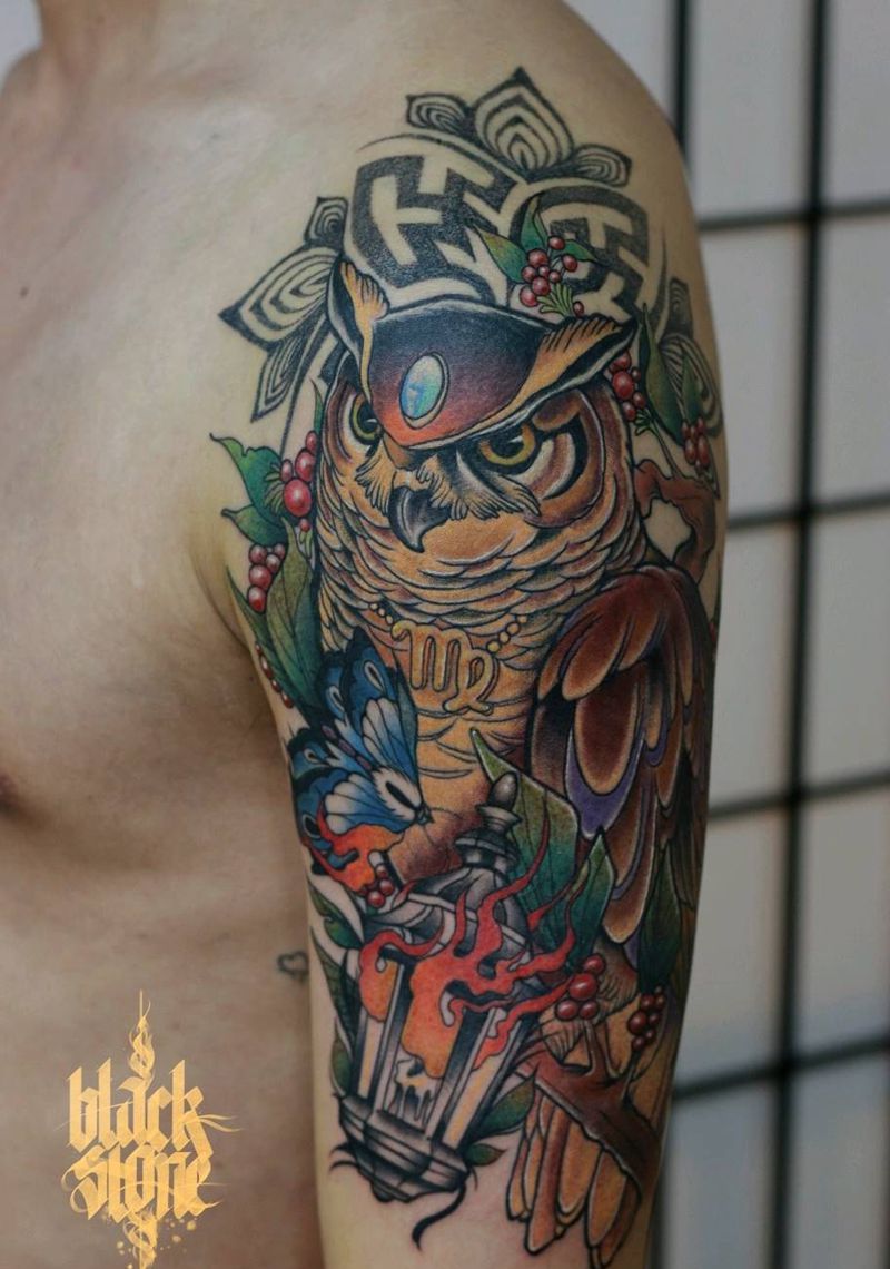 当前位置: 首页 >贵州省贵阳市纹身店-黑石刺青 贵阳店纹身图案>猫头鹰纹身图片_手臂新传统纹身图案