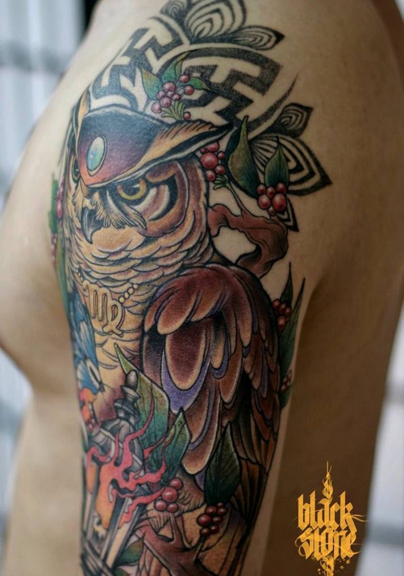 当前位置: 首页 >贵州省贵阳市纹身店-黑石刺青 贵阳店纹身图案>猫头鹰纹身图片_手臂新传统纹身图案