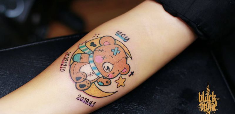当前位置: 首页 >贵州省贵阳市纹身店-黑石刺青 贵阳店纹身图案>小熊纹身图片_手臂New School纹身图案