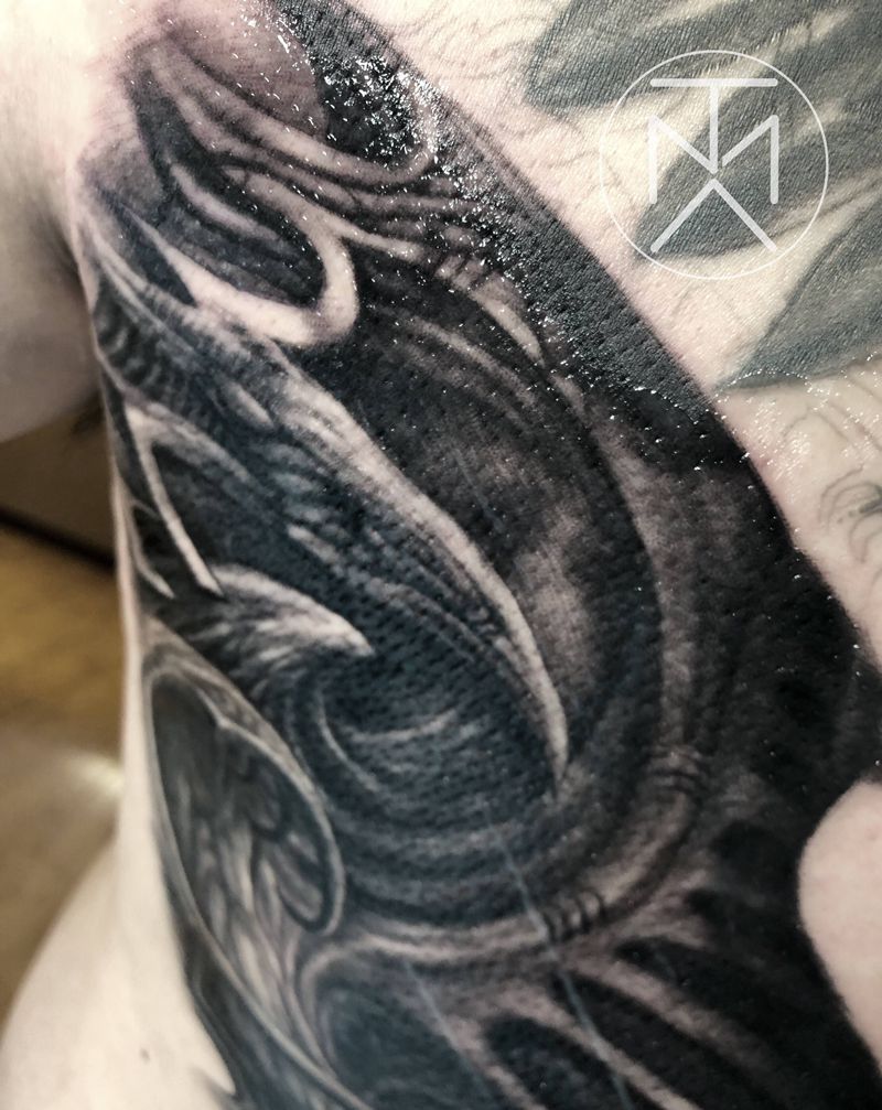 满背遮盖进程纹身图片_背部欧美写实遮盖纹身图案