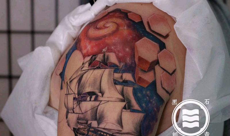 当前位置: 首页 >贵州省贵阳市纹身店-黑石刺青 贵阳店纹身图案>星空花臂进行中纹身图片_手臂欧美写实纹身图案