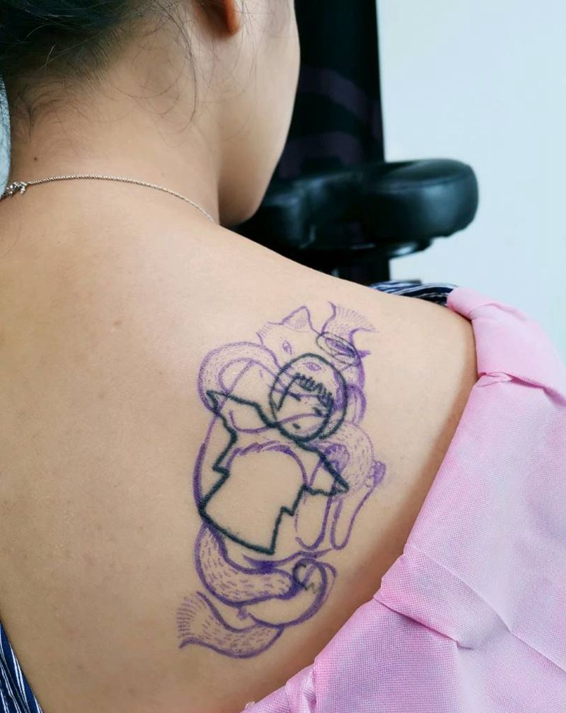 猫咪遮盖纹身图片_背部点刺纹身图案