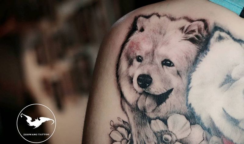 当前位置: 首页 >贵州省贵阳市纹身店-黑石刺青 贵阳店纹身图案>宠物狗“蛋炒饭”纹身图片_背部肩部欧美写实宠物狗花纹身图案