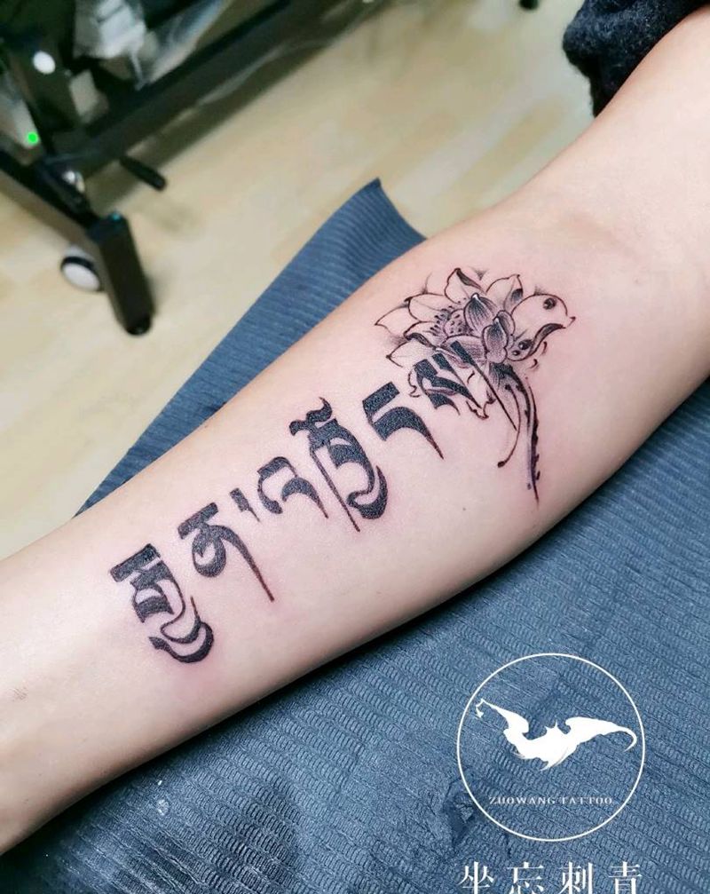 梵文莲花纹身图片_手臂图腾新传统纹身图案