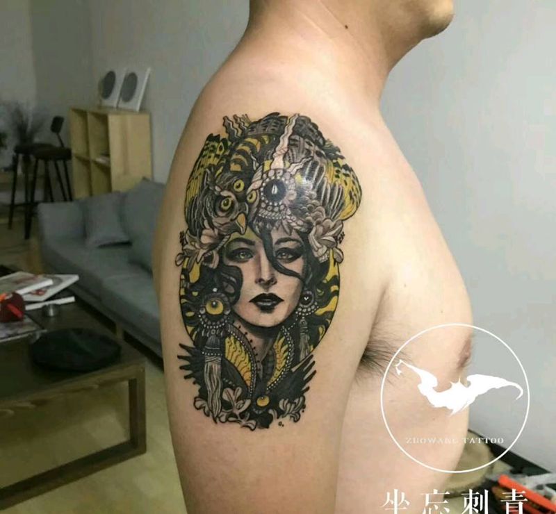 • 纹身吧推荐的披肩图腾半胛纹身图案作品展示