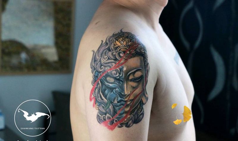 当前位置: 首页 >贵州省贵阳市纹身店-黑石刺青 贵阳店纹身图案>一念之间纹身图片_手臂新传统纹身图案