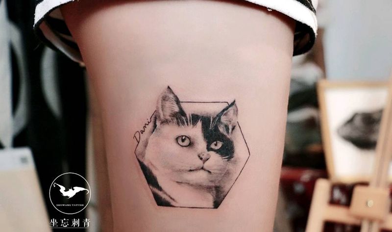 当前位置: 首页 >贵州省贵阳市纹身店-黑石刺青 贵阳店纹身图案>猫咪纹身图片_腿部欧美写实纹身图案