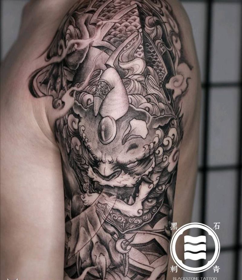 黑灰满背纹身图案