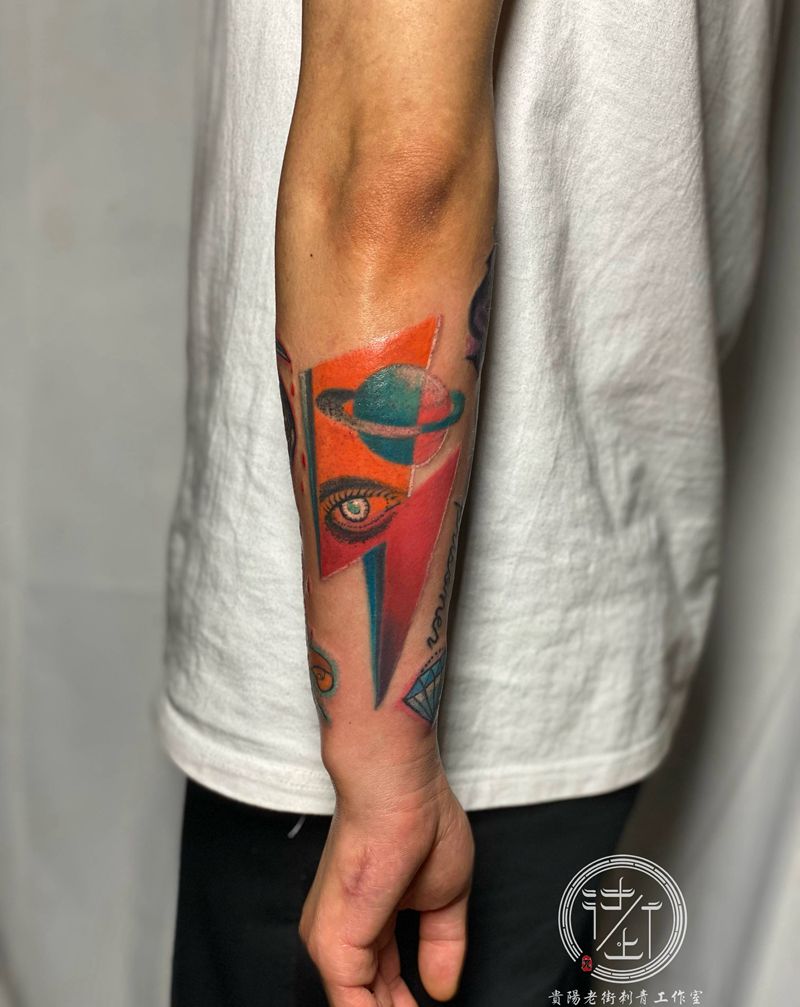 当前位置: 首页 >贵州省贵阳市纹身店-贵阳老街刺青工作室纹身图案>花臂的开始纹身图片_手臂水彩New School花臂纹身图案