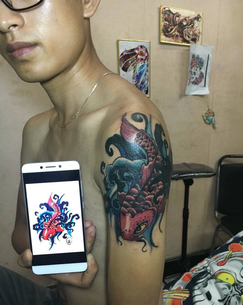 当前位置: 首页 >贵州省贵阳市纹身店-贵阳老街刺青工作室纹身图案>16年的鱼摆摆纹身图片