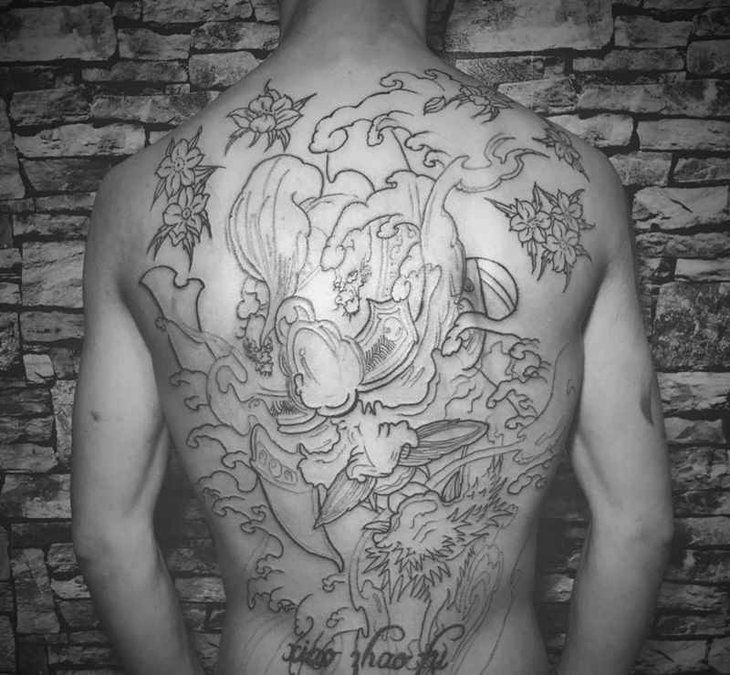 当前位置: 首页 >贵州省贵阳市纹身店-贵阳老街刺青工作室纹身图案>满背割线纹身图片