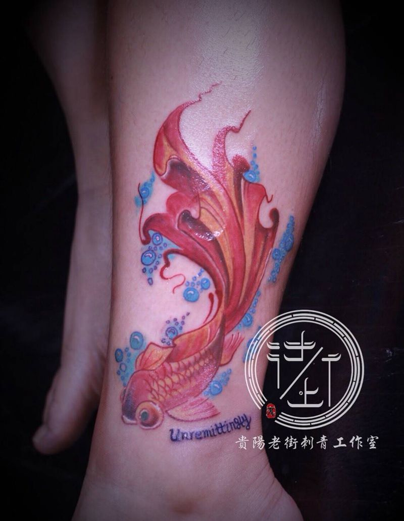 当前位置: 首页 >贵州省贵阳市纹身店-贵阳老街刺青工作室纹身图案>金鱼遮盖伤疤纹身图片