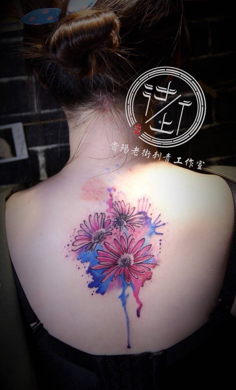 当前位置: 首页 >贵州省贵阳市纹身店-贵阳老街刺青工作室纹身图案>水彩花纹身图片_欧美成品颈部背部清新静物植物贵阳纹身图案