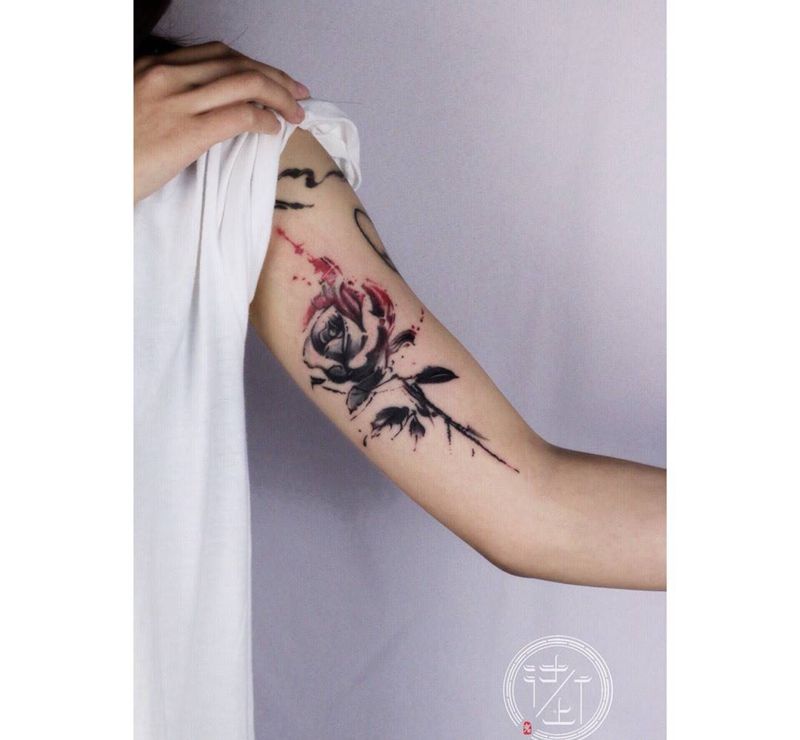 当前位置: 首页 >贵州省贵阳市纹身店-贵阳老街刺青工作室纹身图案>水墨玫瑰纹身图片