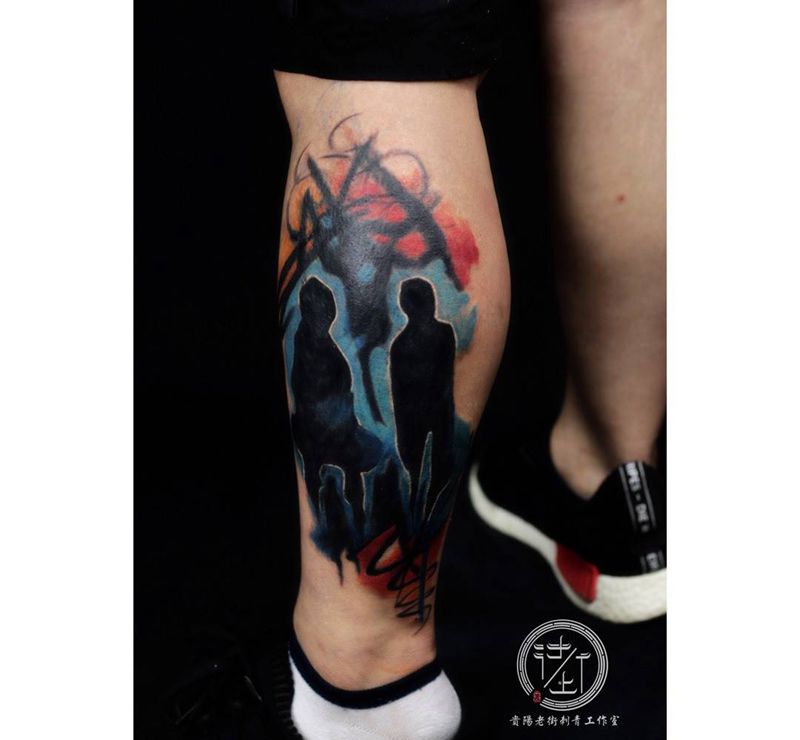 • T包小腿吹火男+阿多福纹身图片_腿部老传统新传统吹火男阿