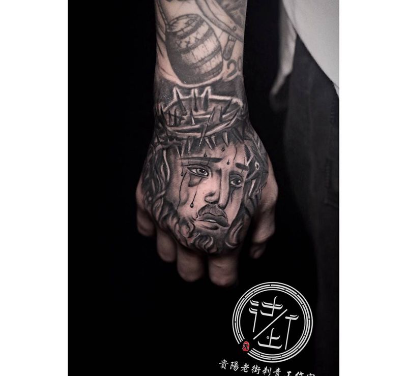翔子作品,手背耶稣,下次做细节纹身图片_手部欧美写实耶稣纹身图案
