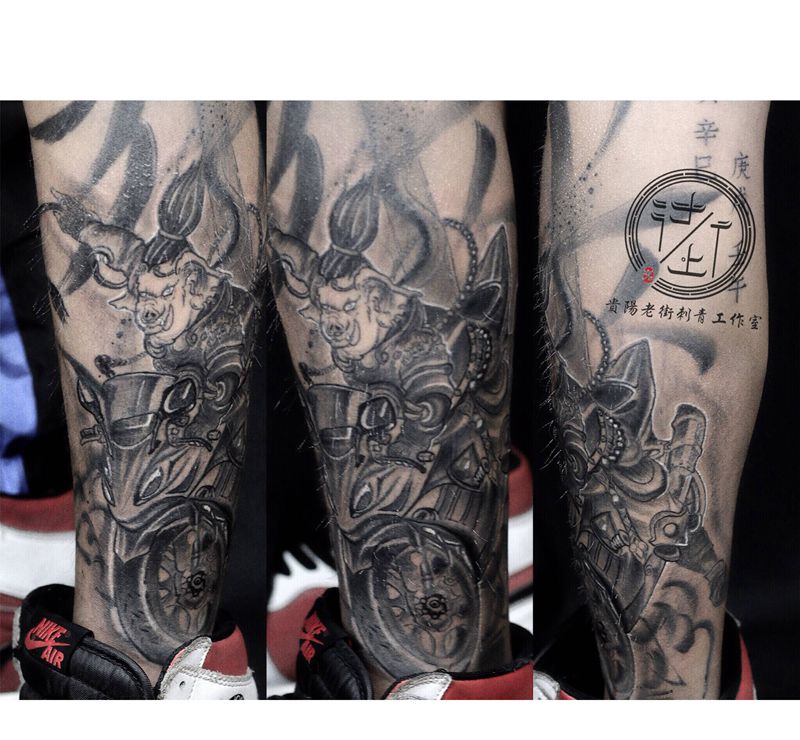 当前位置: 首页 >贵州省贵阳市纹身店-贵阳老街刺青工作室纹身图案>翔子作品,猪八戒骑个烂摩托。纹身图片_腿部新传统欧美写实猪八戒摩托车纹身图案