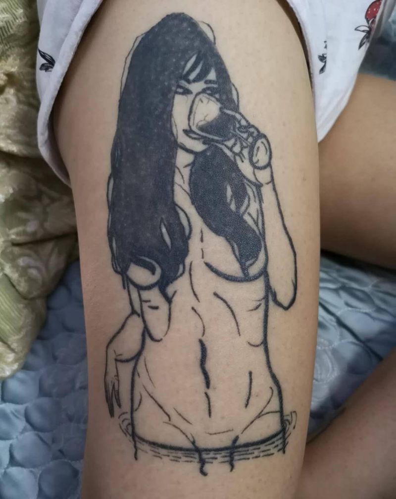 翔子作品,水墨遮盖。(未完成)纹身图片_腿部水墨遮盖纹身图案