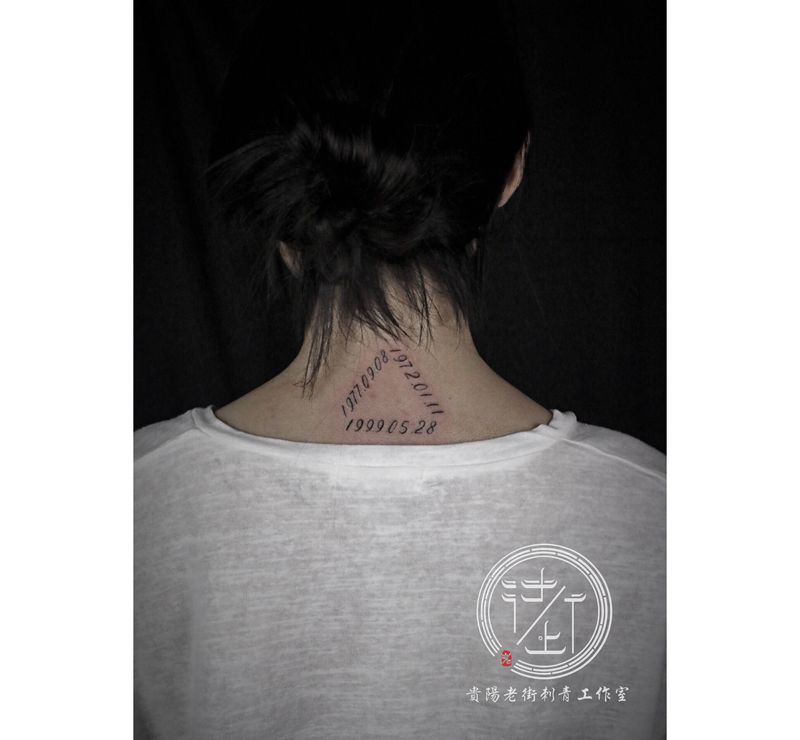 翔子小作,重要的日子。纹身图片_颈部几何数字纹身图案