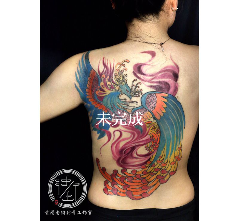 当前位置: 首页 >贵州省贵阳市纹身店-贵阳老街刺青工作室纹身图案>翔子作品,凤凰(未完成)纹身图片_背部新传统水墨凤凰纹身图案