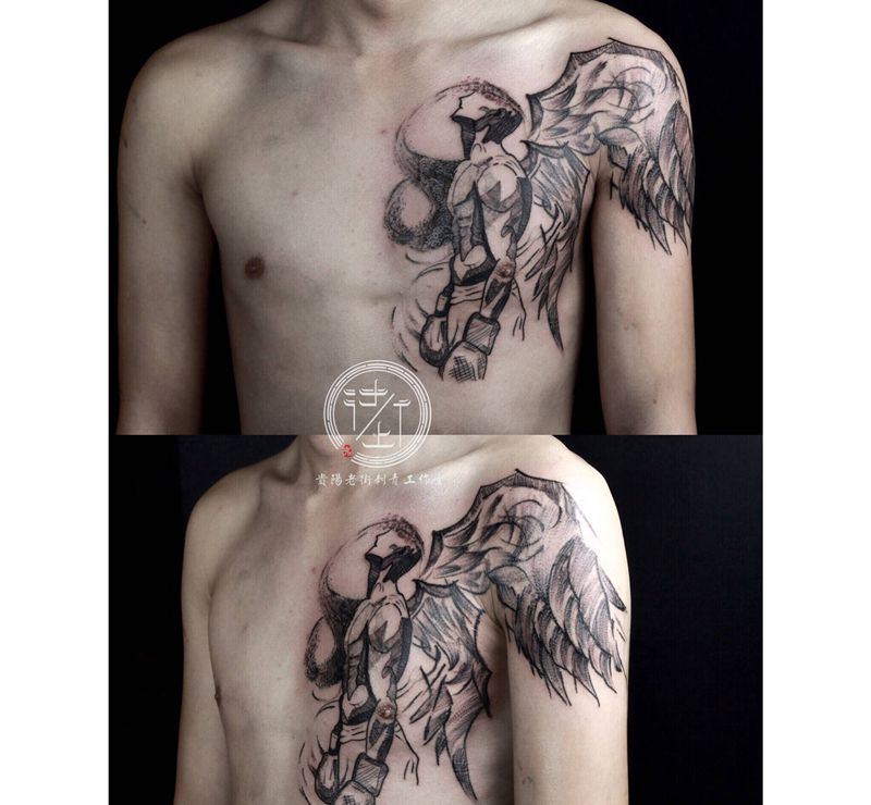 当前位置: 首页 >贵州省贵阳市纹身店-贵阳老街刺青工作室纹身图案>天使纹身图片_胸部手臂点刺天使纹身图案