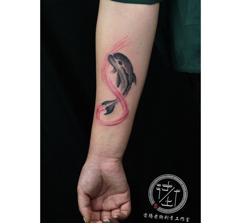 当前位置: 首页 >贵州省贵阳市纹身店-贵阳老街刺青工作室纹身图案>海豚纹身图片_手臂水墨海豚纹身图案