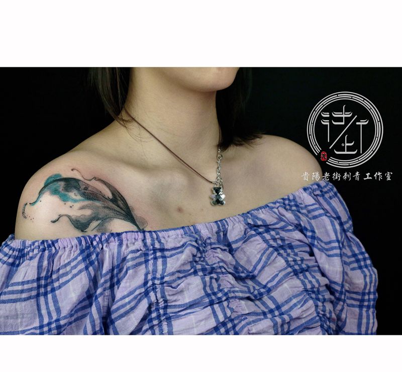 当前位置: 首页 >贵州省贵阳市纹身店-贵阳老街刺青工作室纹身图案>鱼尾纹身图片_肩部水墨鱼尾纹身图案