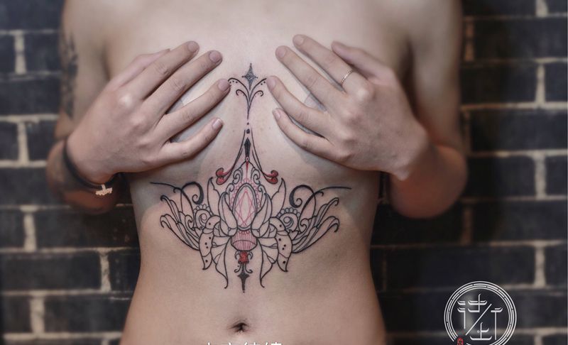 时尚性感的腹部莲花纹