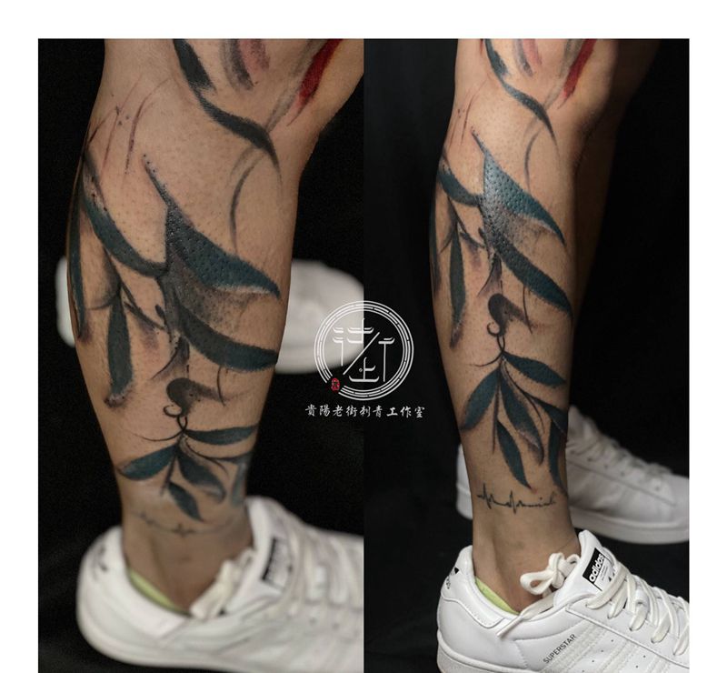 当前位置: 首页 >贵州省贵阳市纹身店-贵阳老街刺青工作室纹身图案>叶子纹身图片_腿部水墨叶子纹身图案