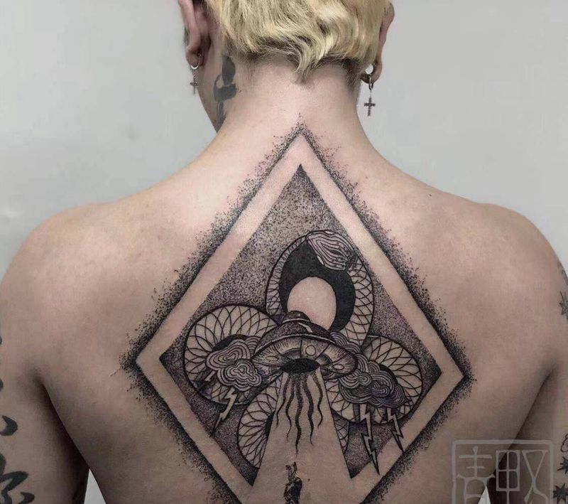 环纹身图片_背部点刺蛇宇宙飞船太阳纹身图案