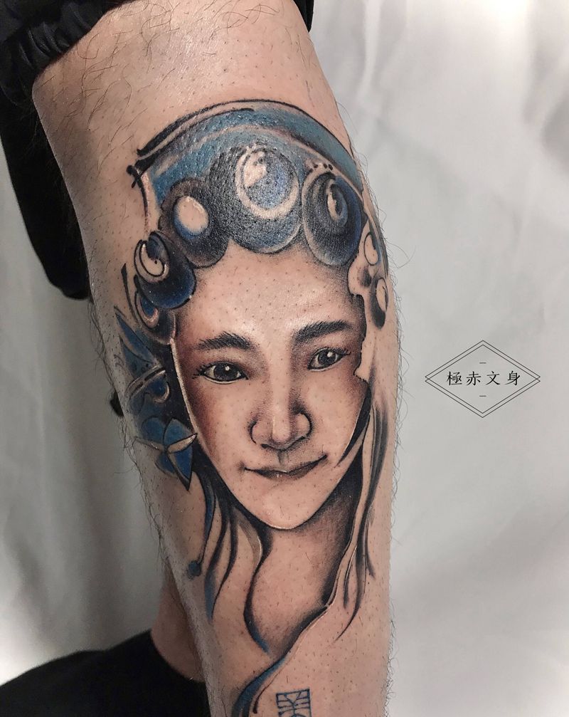 当前位置: 首页 >贵州省贵阳市纹身店-極赤文身纹身图案>水墨花旦纹身图片_腿部水墨花旦水墨纹身图案