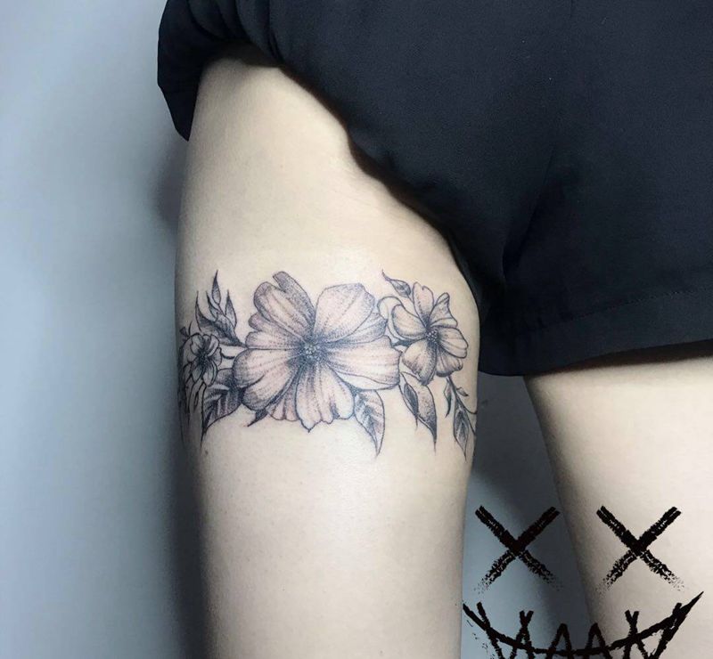 素花腿环纹身图片_腿部点刺素花腿环纹身图案