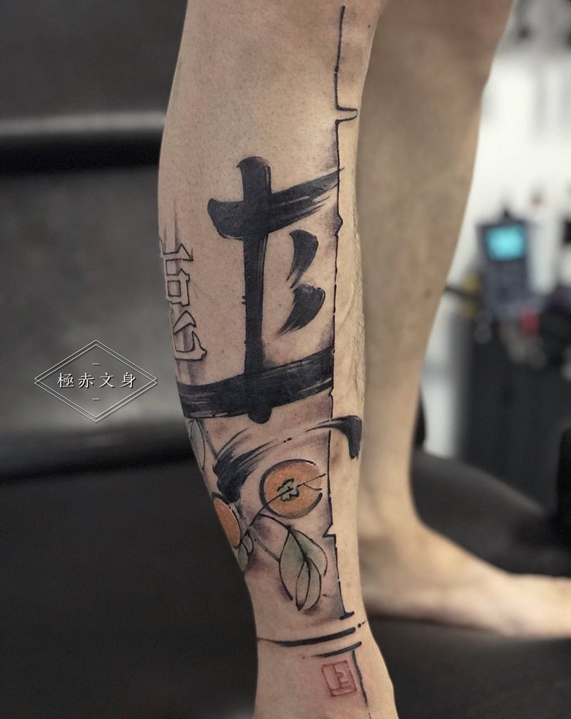 当前位置: 首页 >贵州省贵阳市纹身店-極赤文身纹身图案>小腿书法作品纹身图片_腿部水墨书法水墨纹身图案