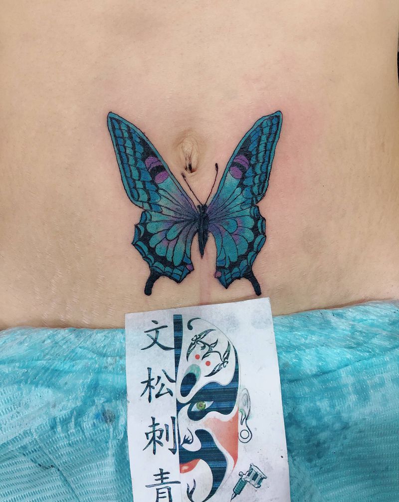 • 时尚性感的腹部莲花纹身图案