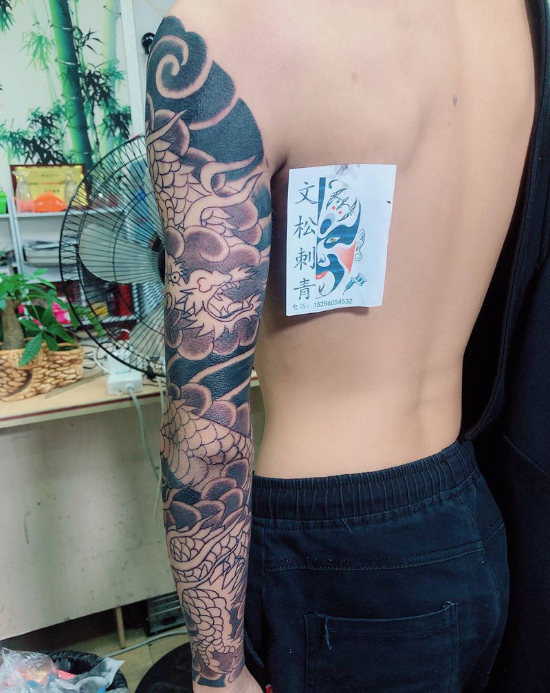 当前位置: 首页 >贵州省贵阳市纹身店-文松刺青(扎佐工作室)纹身图案>老传统花臂龙(未完)纹身图片_手臂纹身图案