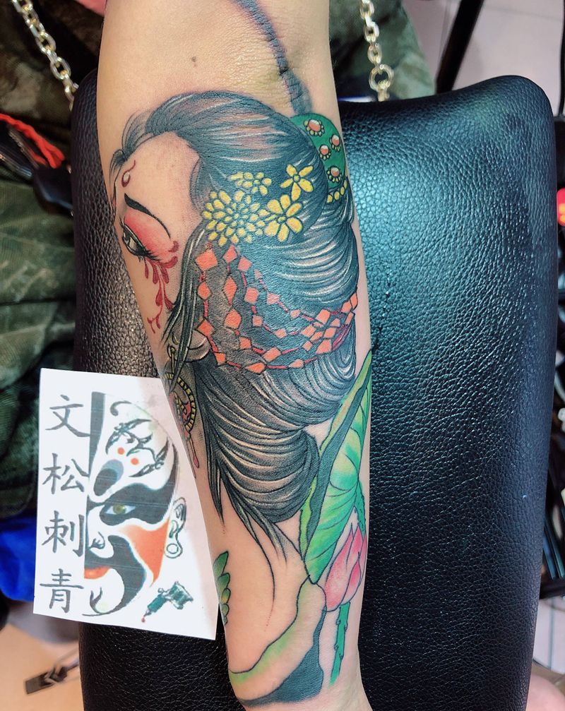 当前位置: 首页 >贵州省贵阳市纹身店-文松刺青(扎佐工作室)纹身图案>艺妓纹身图片_手臂纹身图案