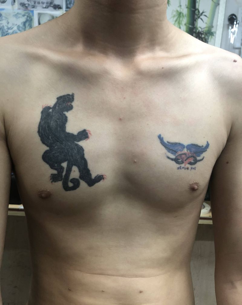 当前位置: 首页 >贵州省贵阳市纹身店-文松刺青(扎佐工作室)纹身图案>花胸遮盖接花臂,后期在做另一只纹身图片_胸部纹身图案