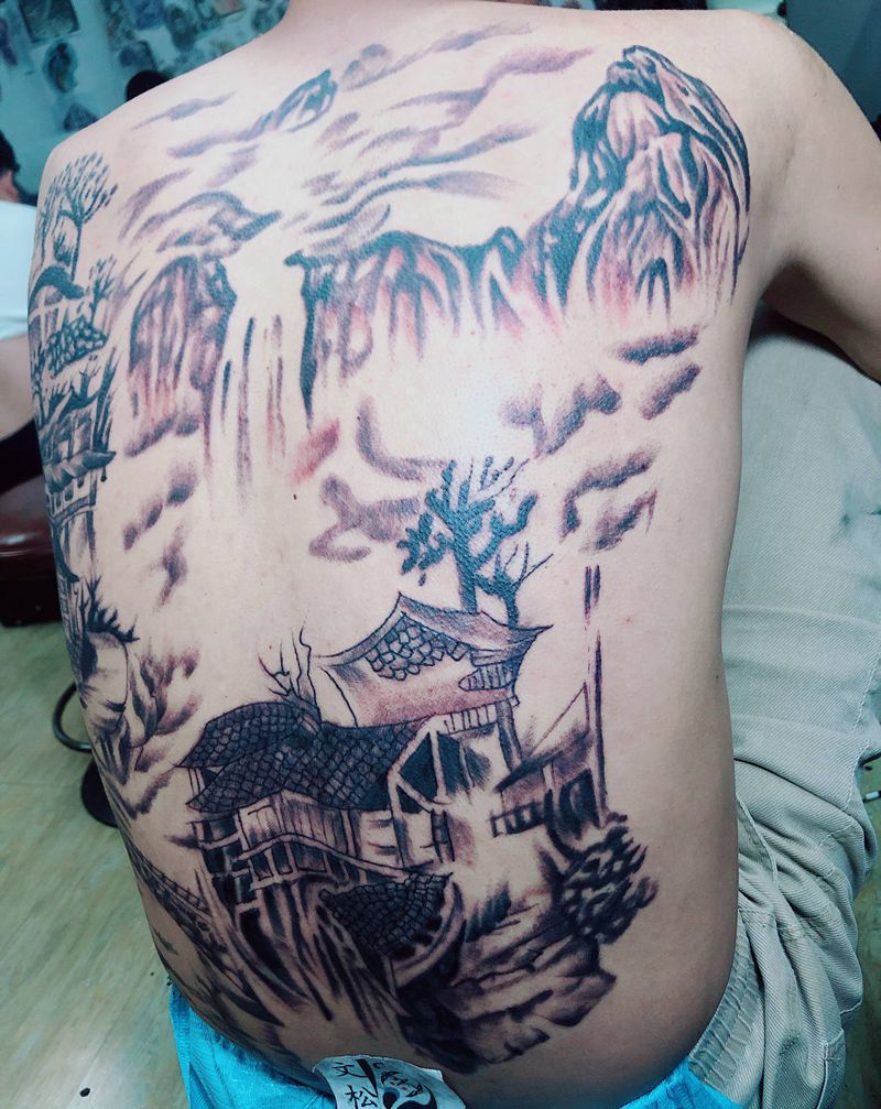 当前位置: 首页 >贵州省贵阳市纹身店-文松刺青(扎佐工作室)纹身图案>山水纹身图片_背部纹身图案