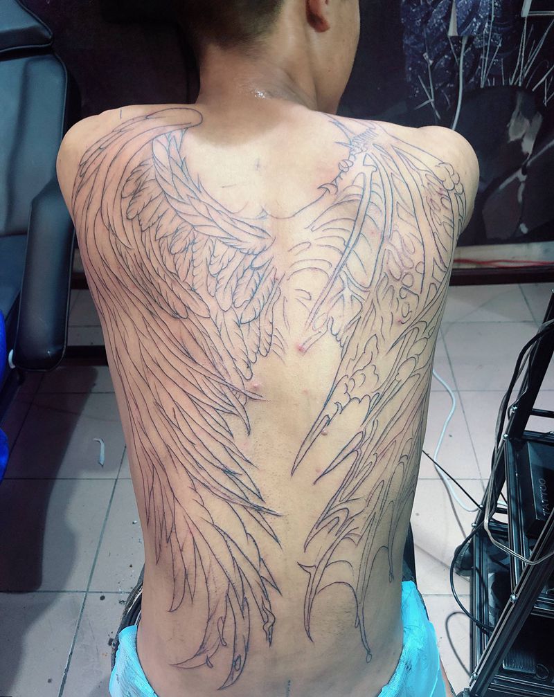 当前位置: 首页 >贵州省贵阳市纹身店-文松刺青(扎佐工作室)纹身图案>善与恶翅膀纹身图片_背部纹身图案