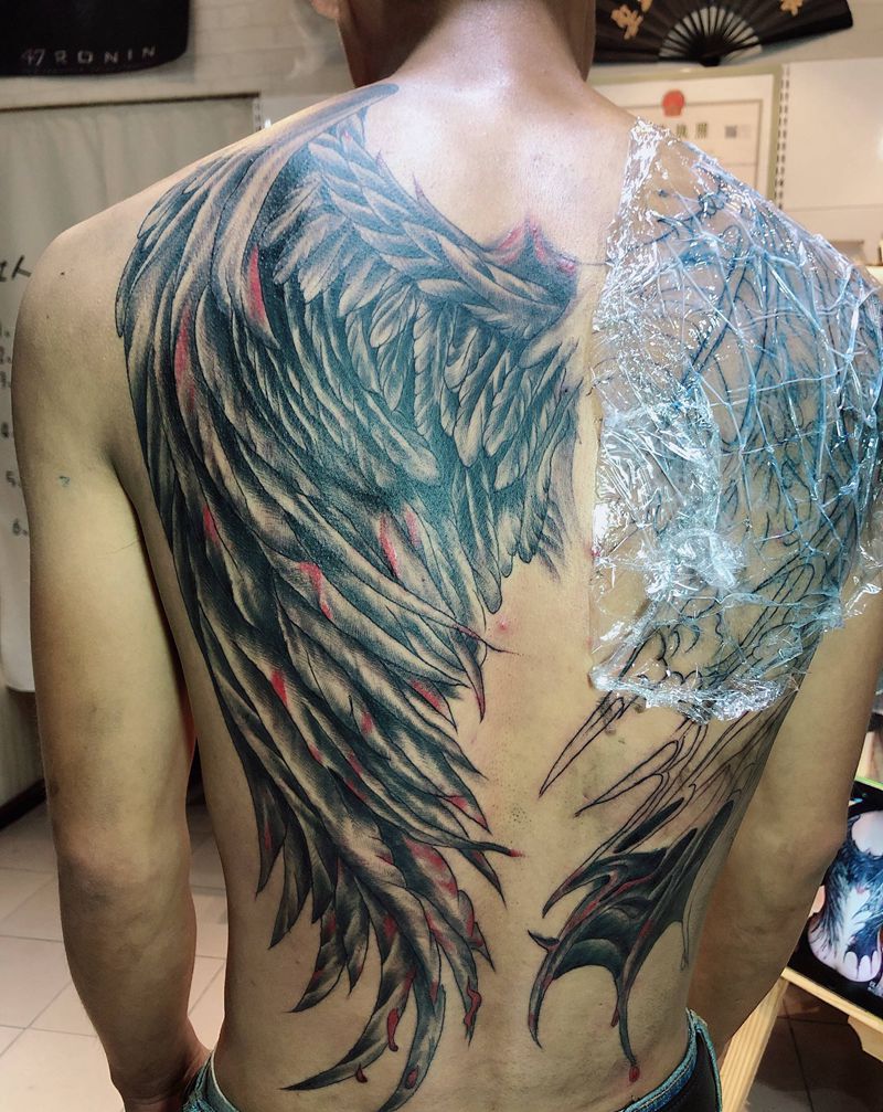 当前位置: 首页 >贵州省贵阳市纹身店-文松刺青(扎佐工作室)纹身图案>善与恶翅膀纹身图片_背部纹身图案