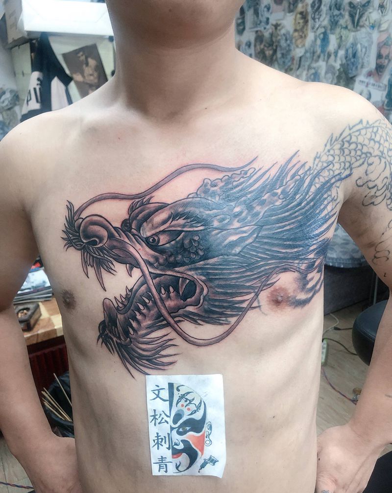 龙盖龙纹身图片_胸部手臂纹身图案