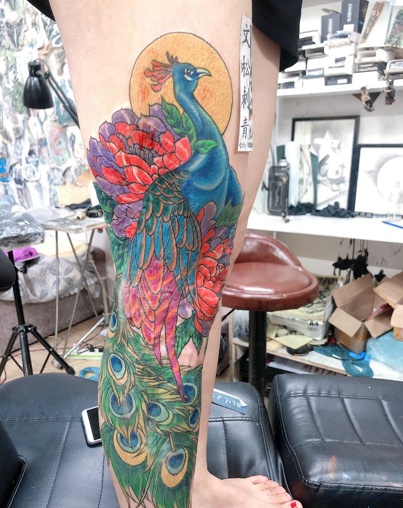 • T网红王老大花腿龙纹身图片_腿部新传统纹身图案