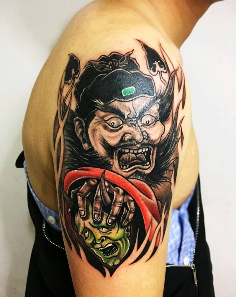 • H传统钟馗纹身 钟馗过肩纹身图案