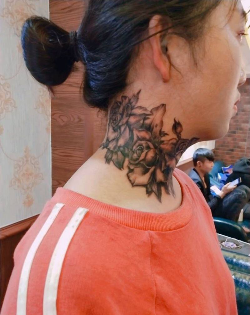 遮盖脖子伤疤。纹身图片