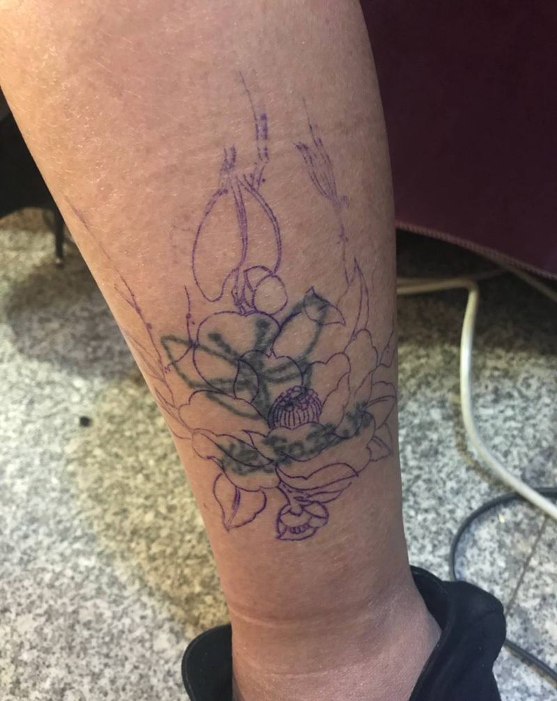 一组15张莲花纹身手