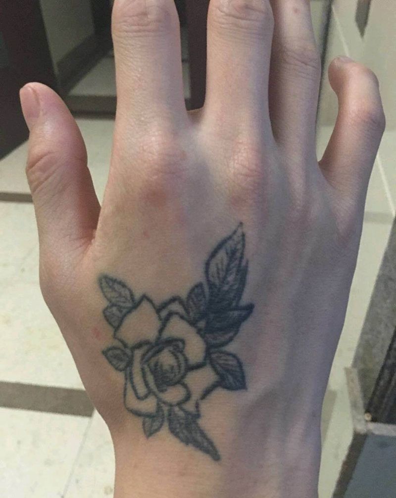 • 手背潮流时尚的玫瑰花眼睛纹身图案