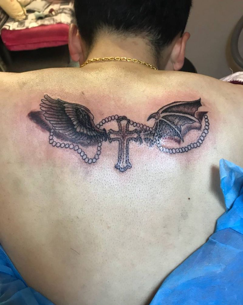 当前位置: 首页 >贵州省贵阳市纹身店-清镇市三目刺青纹身店纹身图案>翅膀天使与恶魔纹身图片